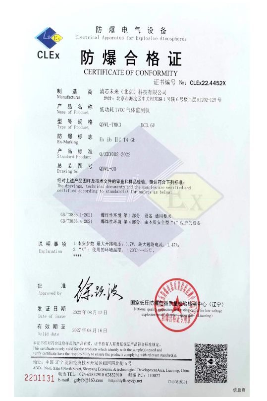- 执行标准:GB3836.1-2010 爆炸性环境 第1部分 设备通用要求;GB3836.2-2010 爆炸性环境第2部分 有隔爆外壳“d”保护的设备;GB3836.4-2010 爆炸性环境第4部分 由本质安全性“i” 保护的设备。