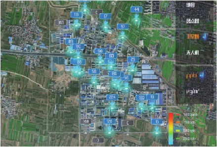 清芯云在线云平台,通过地图、热力图、卫星图三种方式展示设备所测得的数据,可为VOCs气体溯源提供强有力的帮助,同时提供无人机航线图,使得污染无处可逃。
