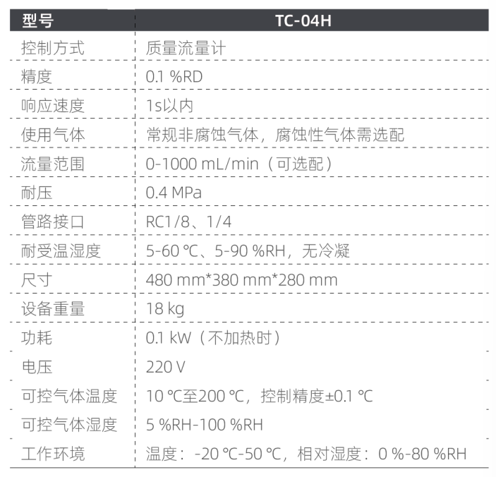 通过质量流量计进行控制,具有0.1%RD的高精度和1s以内的高响应速度,可自由切换不同气体,流量范围广,集成度高,体积小,重量轻,具有高安全性,内部气路均通过校验,不漏气,能够耐得住5-60摄氏度的温度和5-90%RH的湿度,使其应用范围广泛,可将气体的温度的温度控制在10-200摄氏度,将气体的湿度控制在5%RH-100%RH。